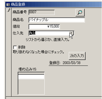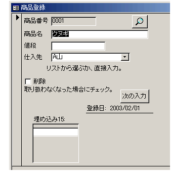 Me!埋め込み15.Form!商品番号 = Me!商品番号