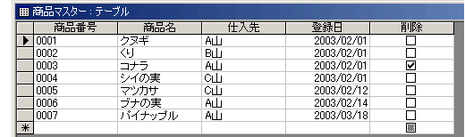 前のページのサンプルDBをお使いいただいてる場合は、ちょっとわかりにくいかもしれません。。。。