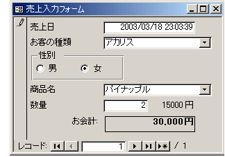 「値段」というフィールドの位置づけが変わったことで、「売上入力フォーム」も、若干の手直しが必要ですね。