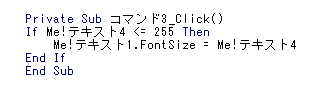 Me!テキストボックス名.Fontsize = Me!別のテキストボックス名