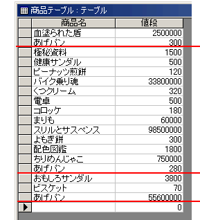 このテーブルから、MS-Accessに対して「お目当てのあげパン」だけを抽出するように指示できるのなら、主キーなんていりません。