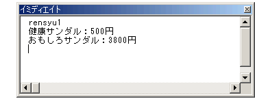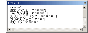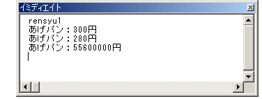 今度はメッセージボックスじゃなくて、イミディエイトウィンドウに結果を出してみましょうか。