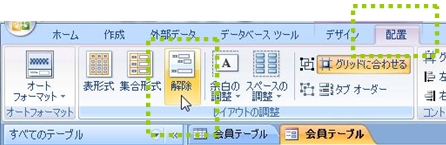 その後で、タブメニュー「配置」をクリックし、リボンの中から「解除」をクリックします。