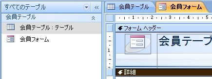 これで、この 会員管理.accdb の中には、「会員テーブル」と「会員フォーム」という名前の二つのオブジェクトができた、ということになります。